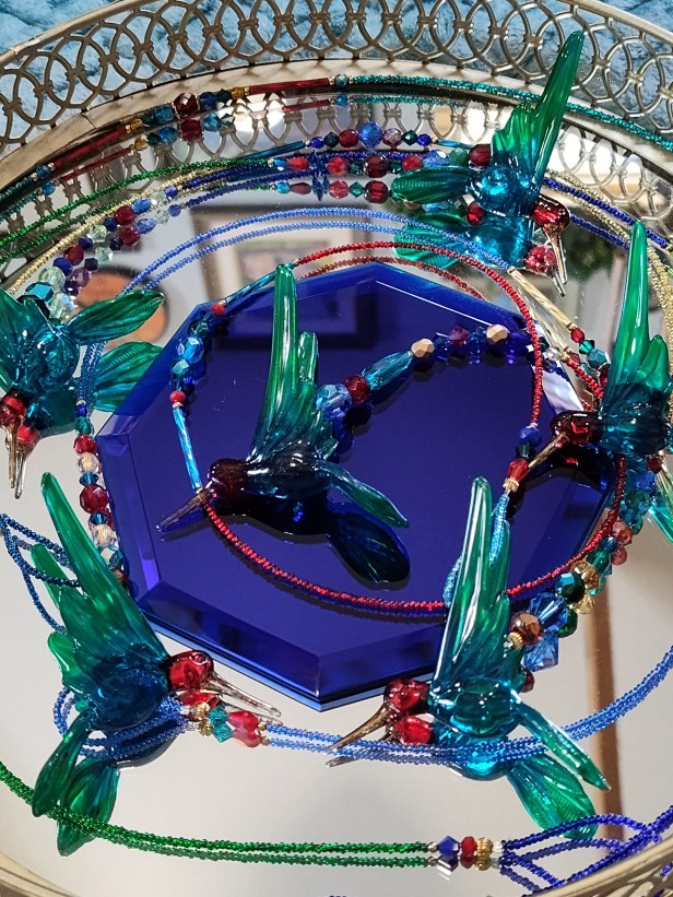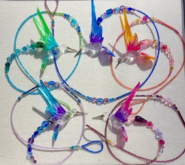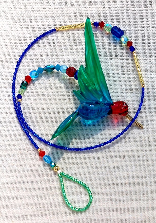 Hummingbirds Blown Glass Hummingbirds with 20-24 inches Swarovski Crystal and Glass Beads 34.00Ruby Throated or Multi Colors
