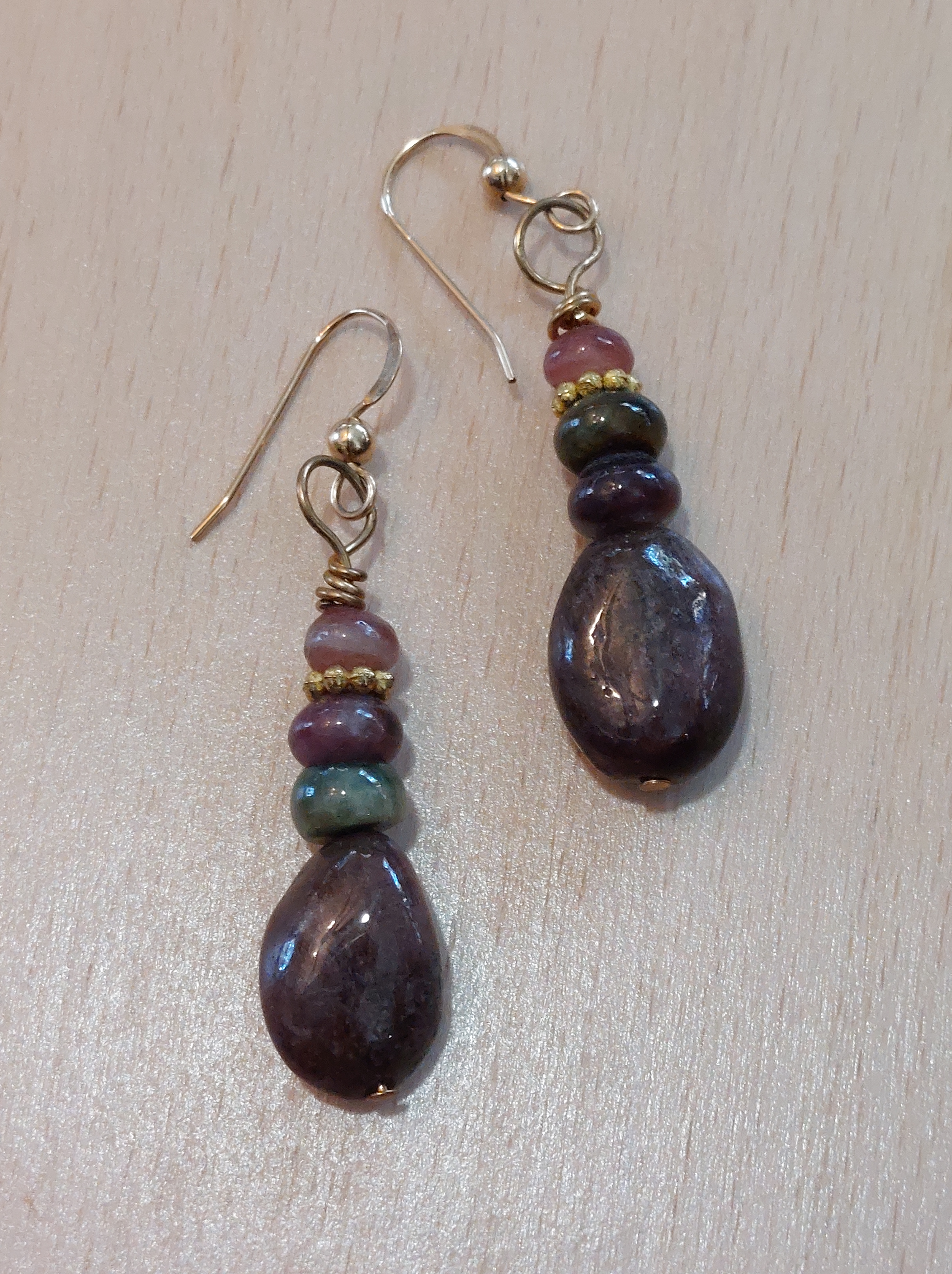 Left: Pink & Green Tourmaline Earrings with Gold Filled Earwires 42.00
