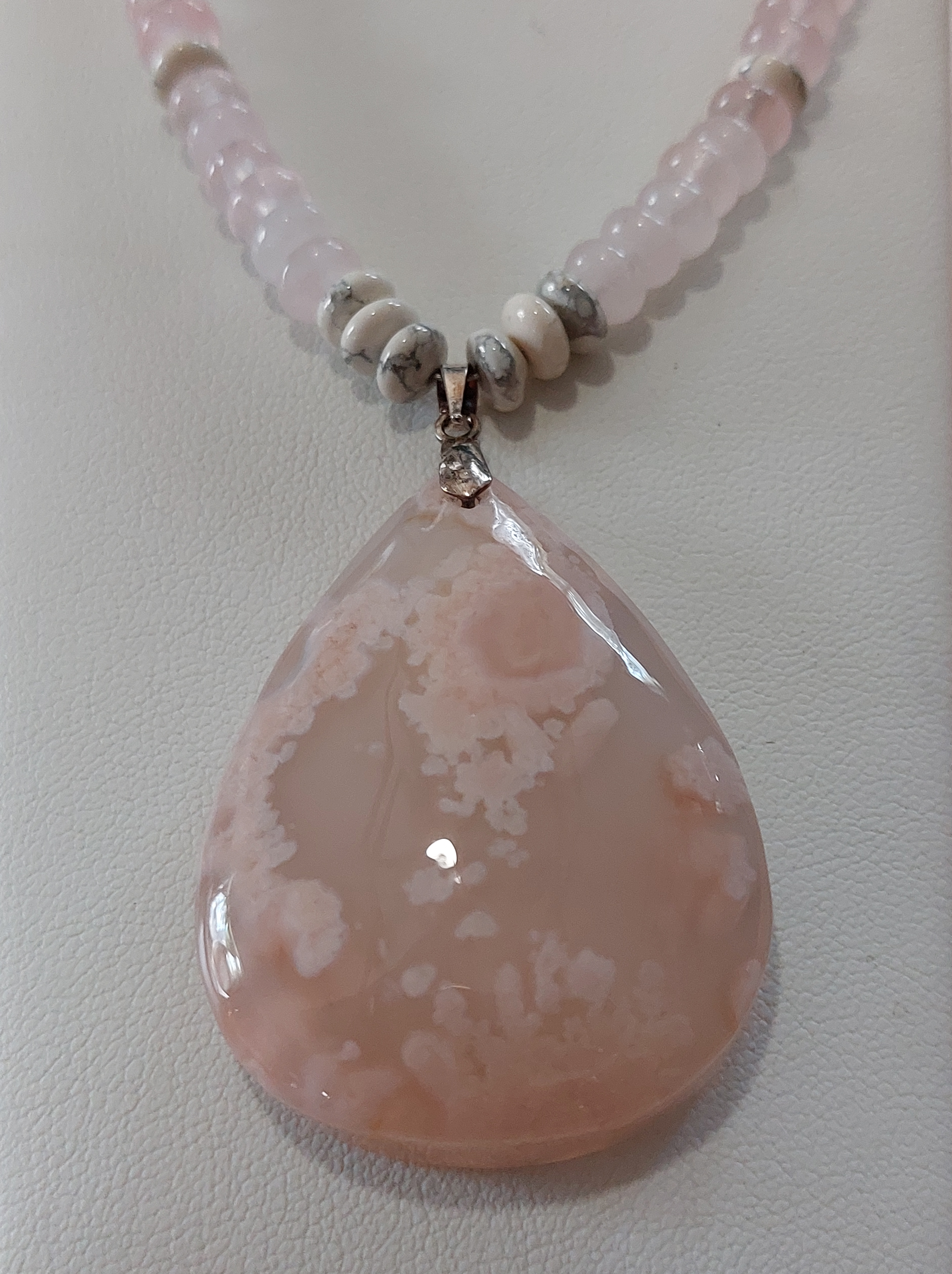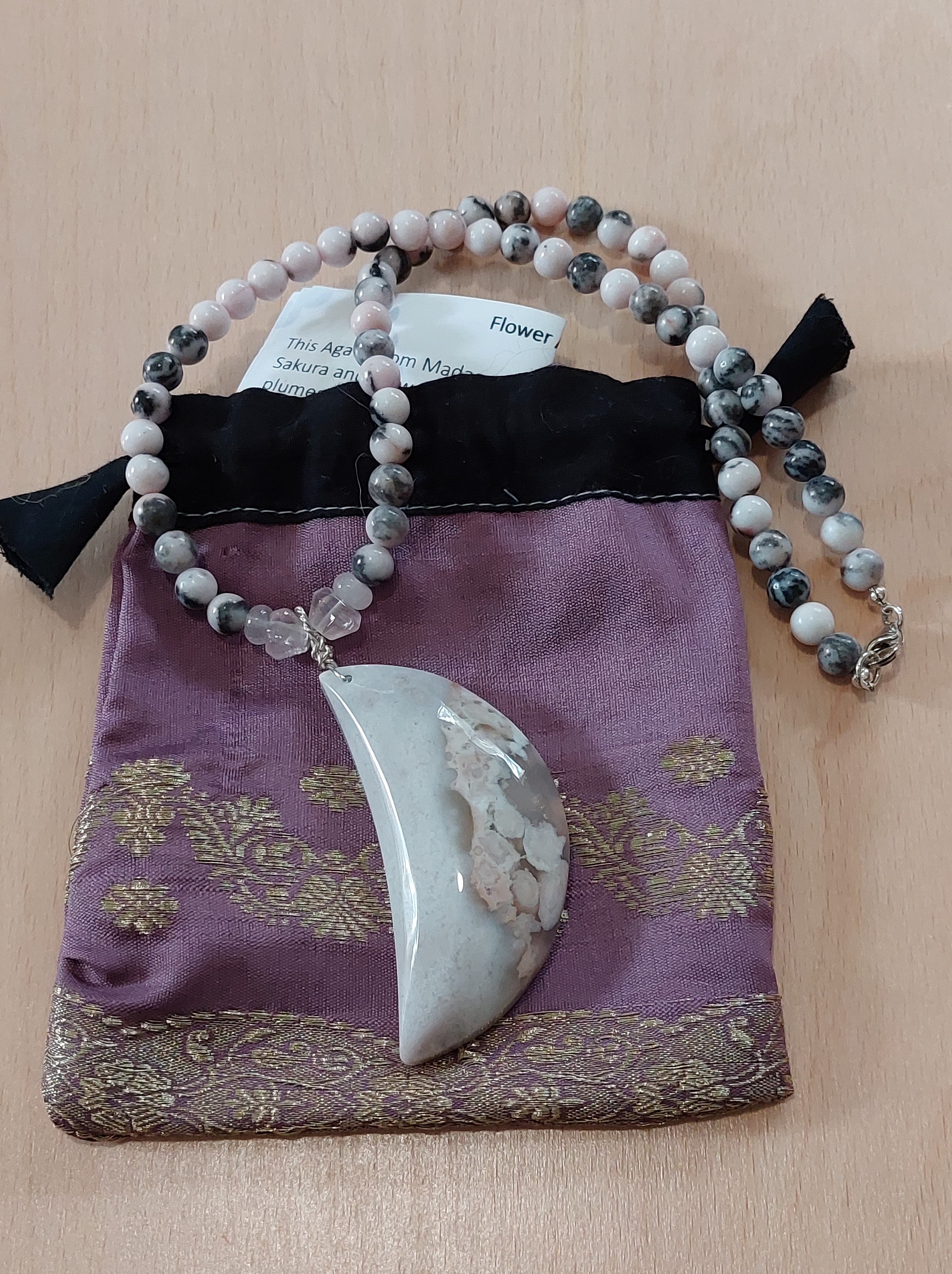Both these Flower Agate Necklaces are 16 inches with Sterling Silver Lobster Clasp. Each comes with a Silk Pouch 84.00 each.